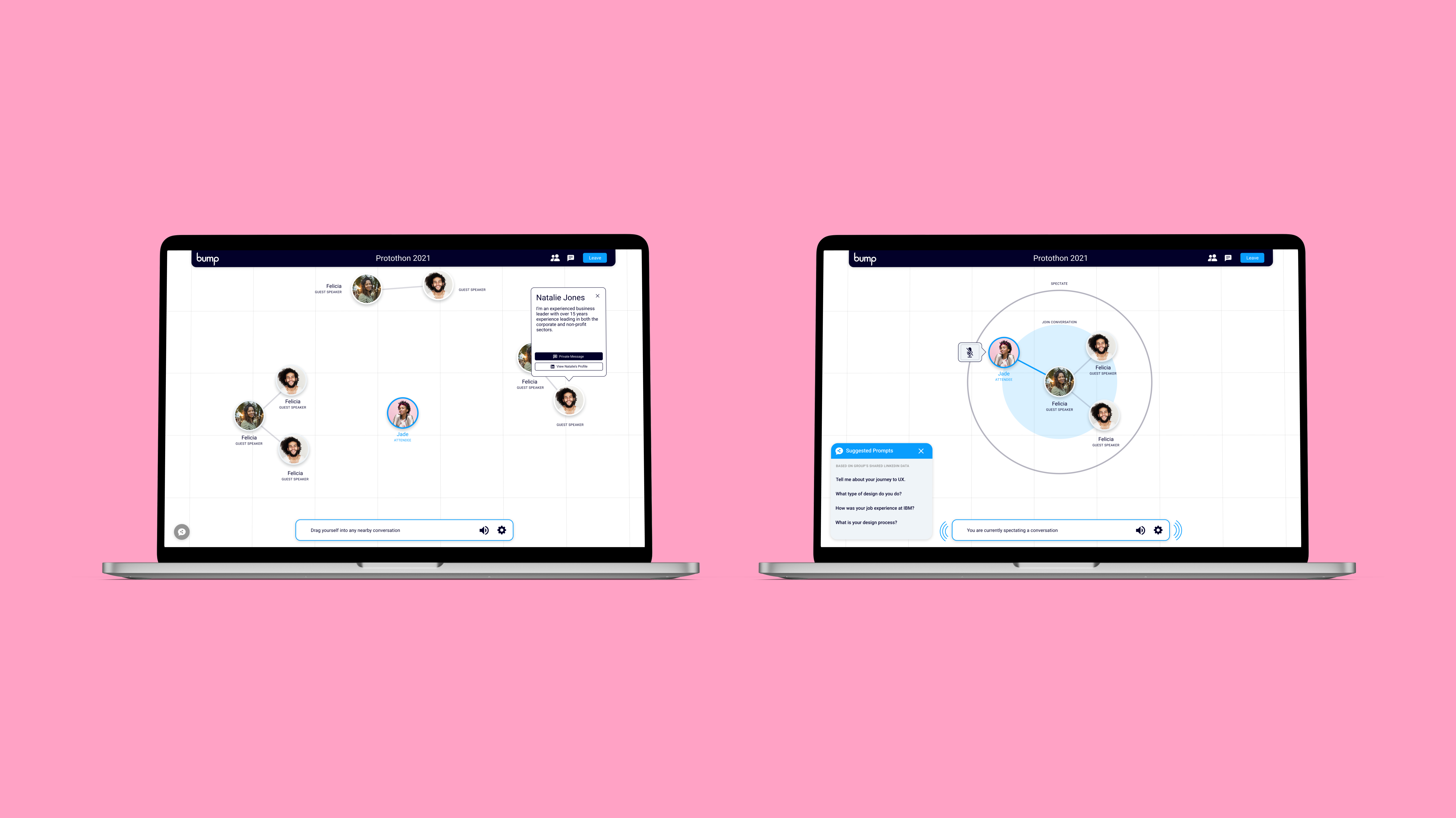48-hour hackathon: virtual “hallway” networking with live rooms - 1st place Enterprise Track.