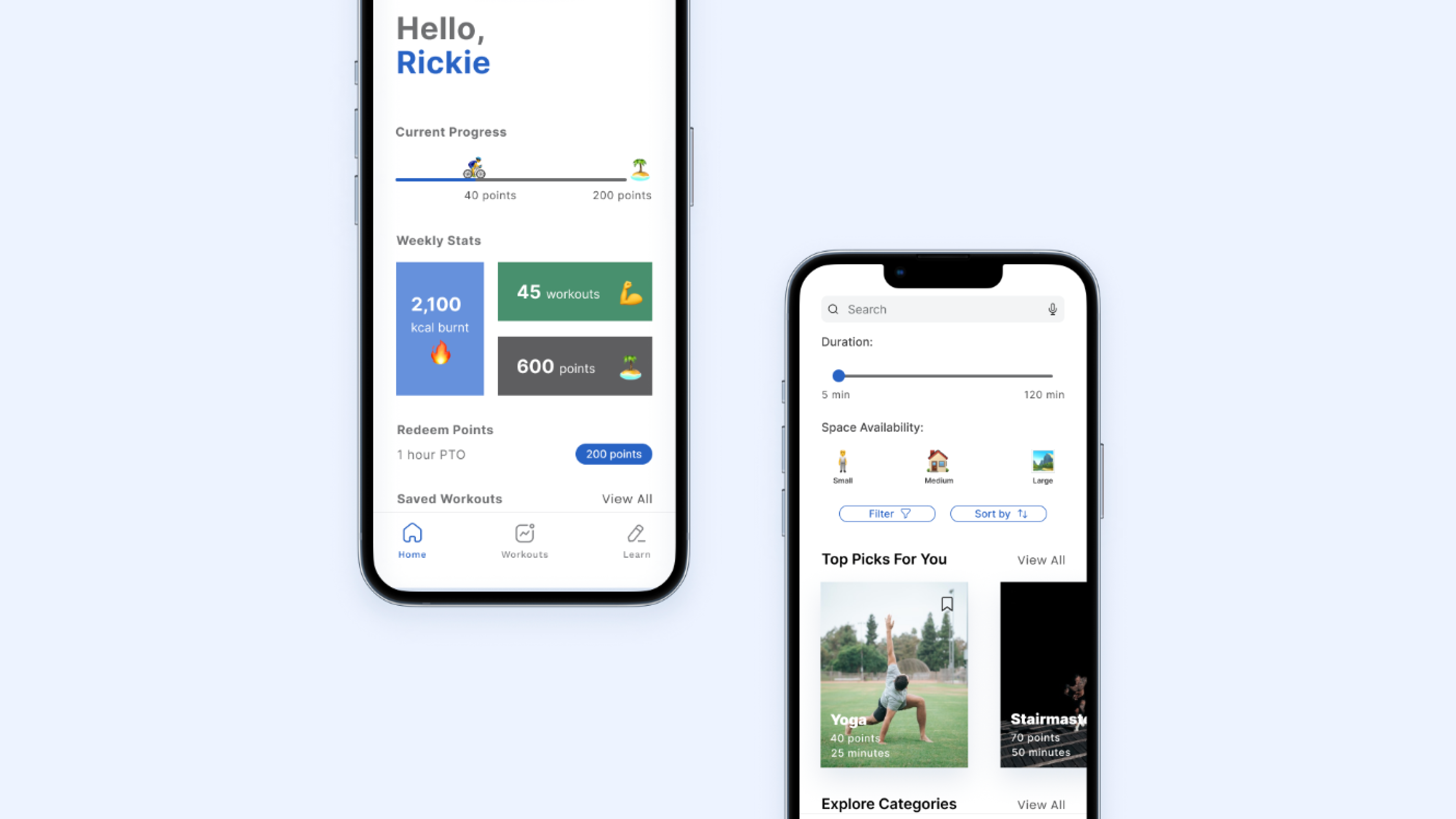 A mobile fitness app empowering full-time remote workers to stay active, build healthy habits, and reclaim their well-being - without leaving home.