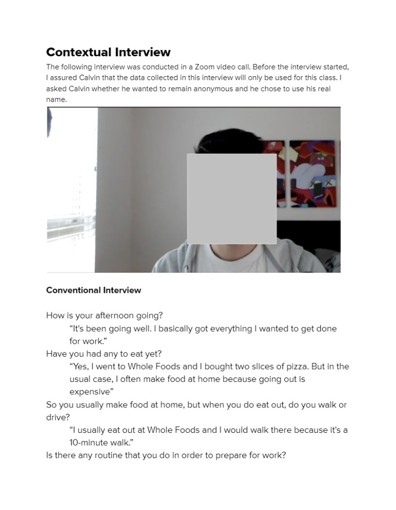 I knew surveys wouldn't give us what we needed. To truly understand our users, I led my team in conducting contextual inquiries with 4 full-time remote workers - a two-part method that combined traditional interviewing with real-time observation.