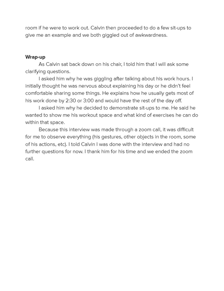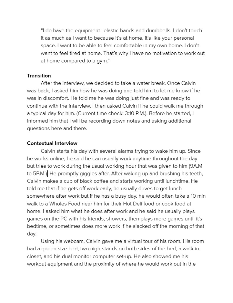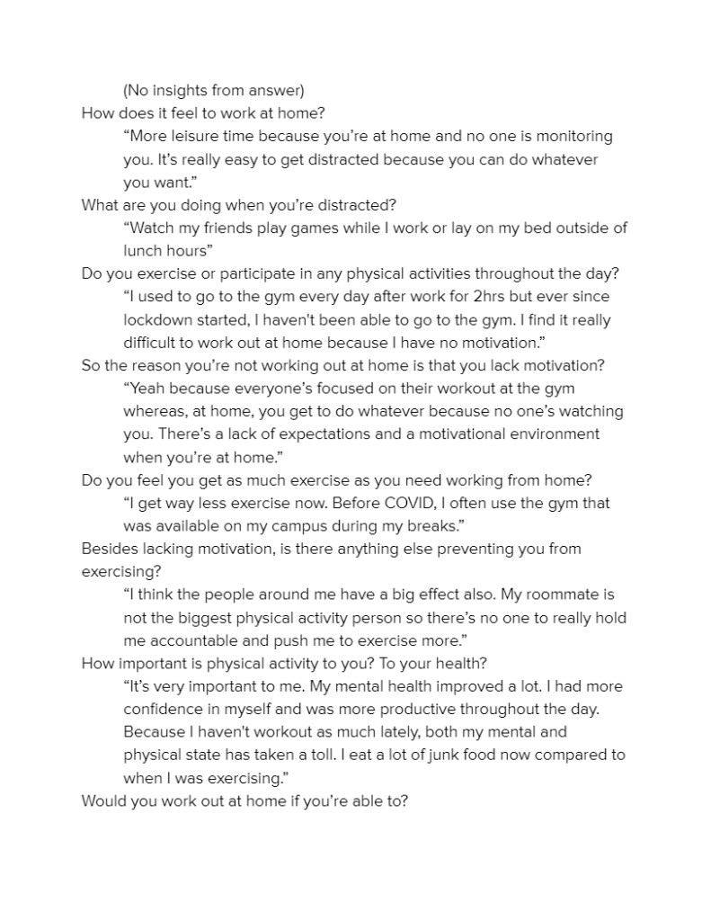 I developed and facilitated individual interviews to uncover each participant's relationship with exercise, their home environment, and what made staying active feel hard.